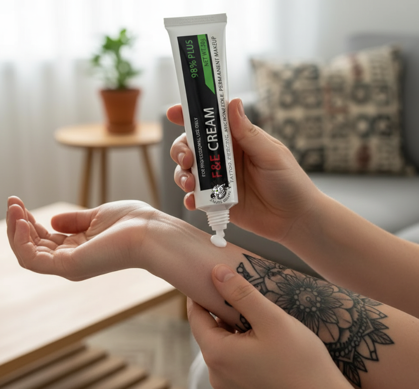 Base Acuosa Superior: A diferencia de otras cremas, F&E es de base acuosa y no grasosa. Se absorbe eficazmente y no interfiere con la aplicación de pigmentos o tintas, asegurando una mejor retención del color.
